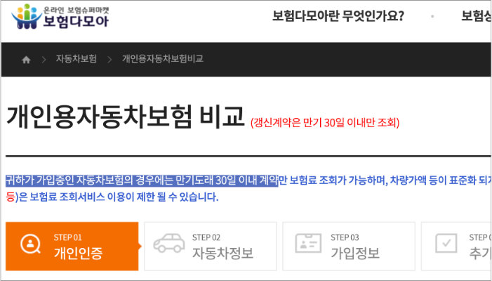 보험다모아 자동차보험료 비교견적 사이트